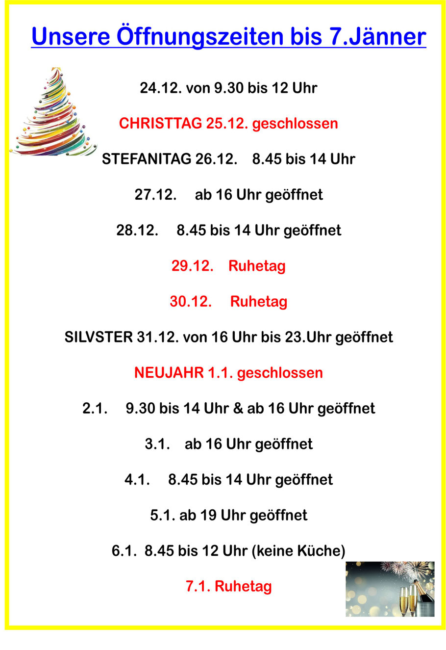 Montag , Dienstag , Mittwoch Ruhetag